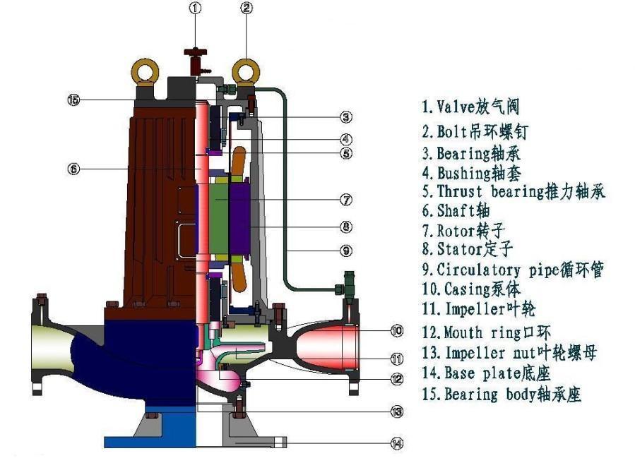 12、電機頂部沒有自動排氣閥,當水泵使用時只要打開進水閥門松開排氣閥邊上的氣嘴,泵體及電機內的空氣會自動從電機頂部的自動排氣閥內自動排出,排氣后又會自動立刻關閉,不會使介質流出泵外,能確保水泵的正常運行,而且在使用過程中,管道內如有空氣進入,它都能自動將其排出,該功用使泵在使用過程中都無需專人經常去打開閥門排氣,_大的降低了正常使用成本與人力。